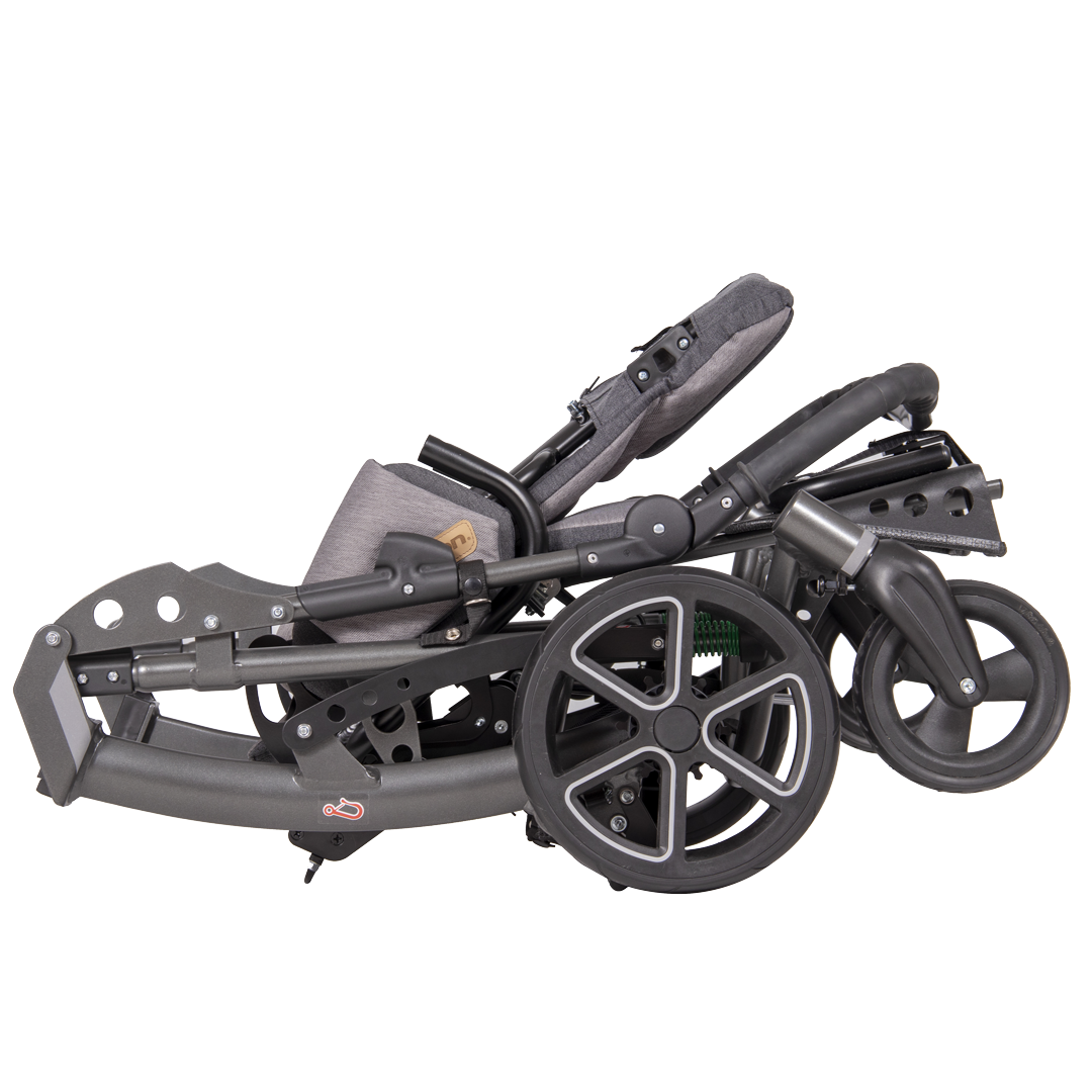 ale i zcela nový systém velikostního nastavování sedáku a opěry zad a také inovativní možnost upevnění fixačních doplňků a příslušenství. Sedačka je vybavena plně odnímatelným komfortním potahem moderního designu s měkkou výplní. Snadnou manipulací je zajištěna plná složitelnost kočárku i s připevněnou sedačkou.