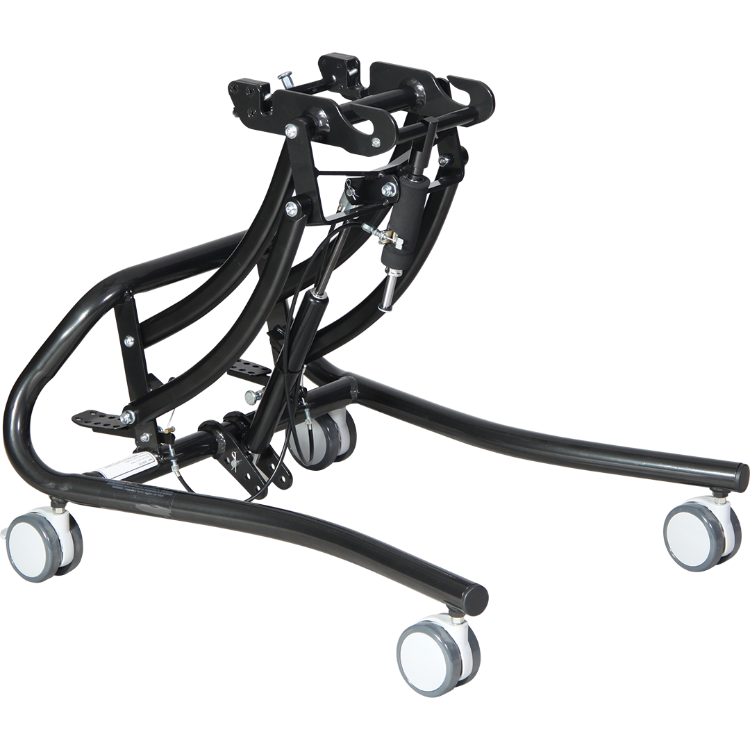 Jeho předností je možnost výškového nastavení a polohování sedačky pomocí plynového pístu s nožním ovládáním. Zadní plastová kolečka jsou opatřena brzdou. Je konstruován pro dvě váhové kategorie, 35 a 50 kg.