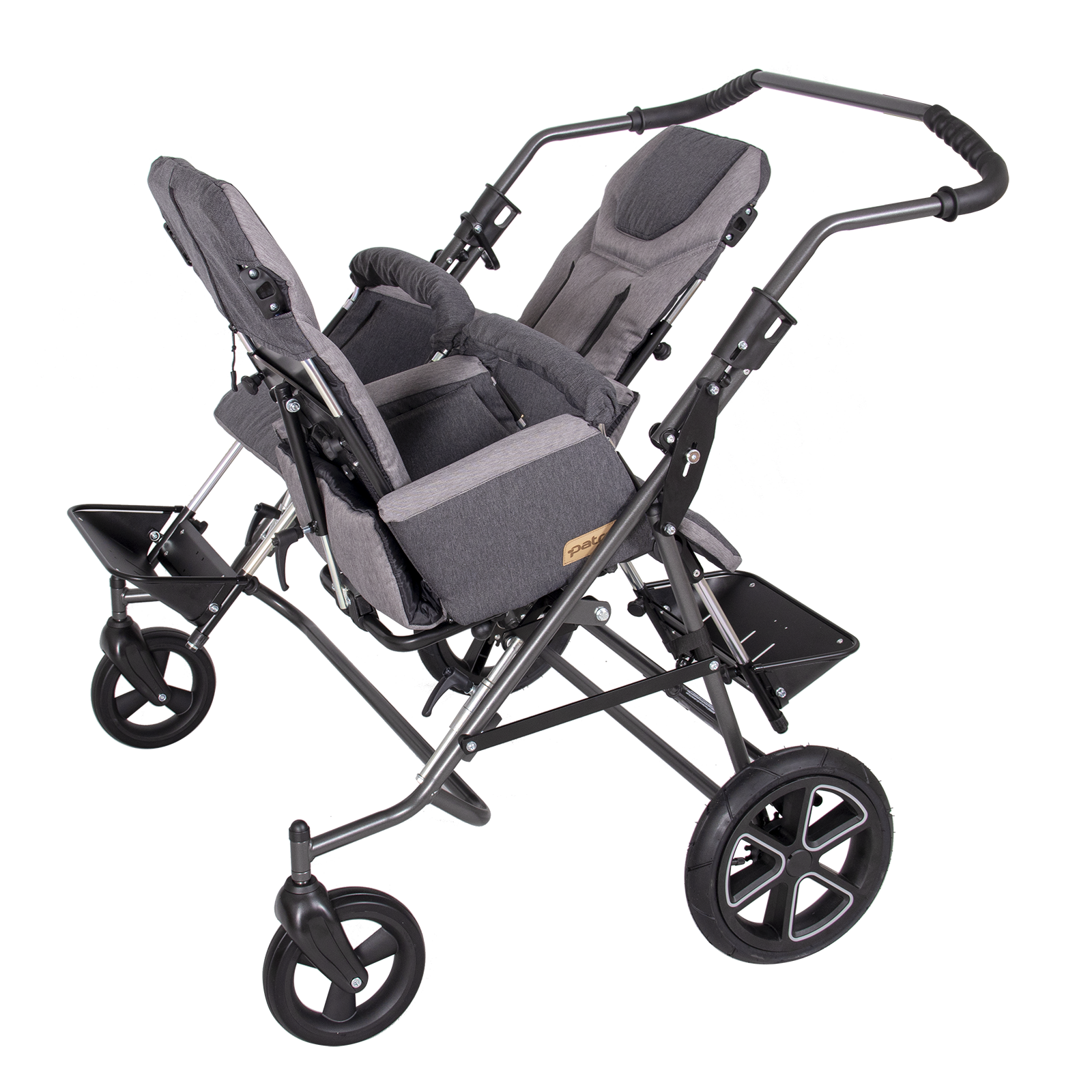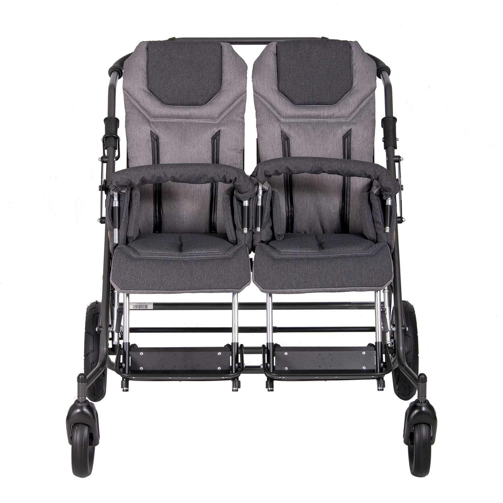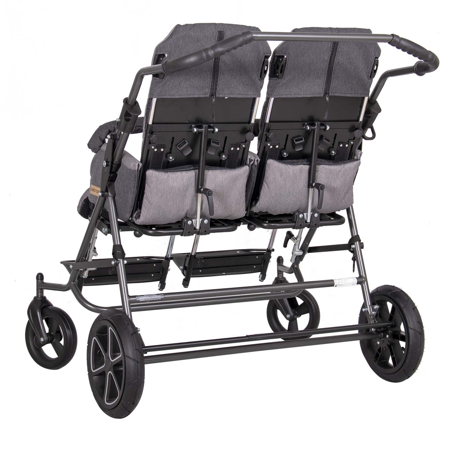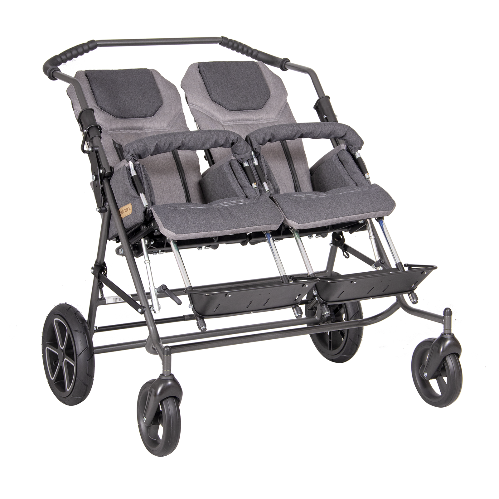 TOM 4 DUO vychází z velmi osvědčeného designu rehabilitačních kočárků řady TOM pro handicapované děti. Plně skládací podvozek je vyroben z lehkých tenkostěnných trubek s povrchovou úpravou práškovou barvou. Sedačky kočárku jsou odnímatelné a lze je samostatně umístit po i proti směru jízdy. Skořepiny sedadel jsou potaženy plně odnímatelným měkkým polstrovaným látkovým čalouněním v módním designu. Snadnou manipulaci zajišťují přední otočná kolečka s aretací směru a také plně skládací rám kočárku i s připevněnými sedačkami.